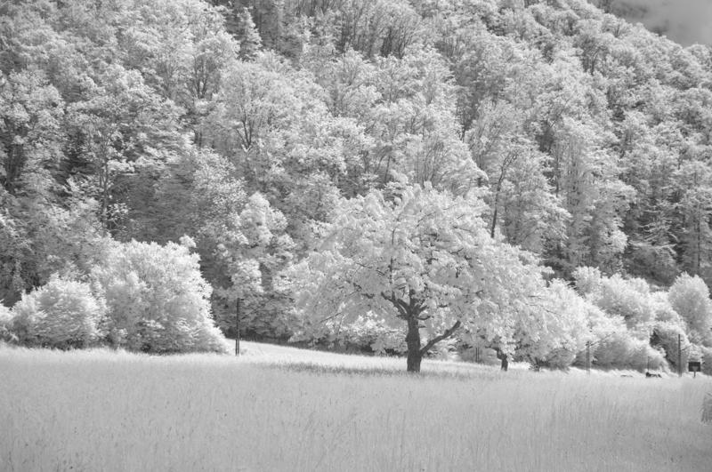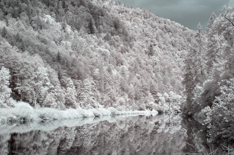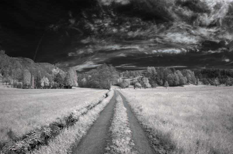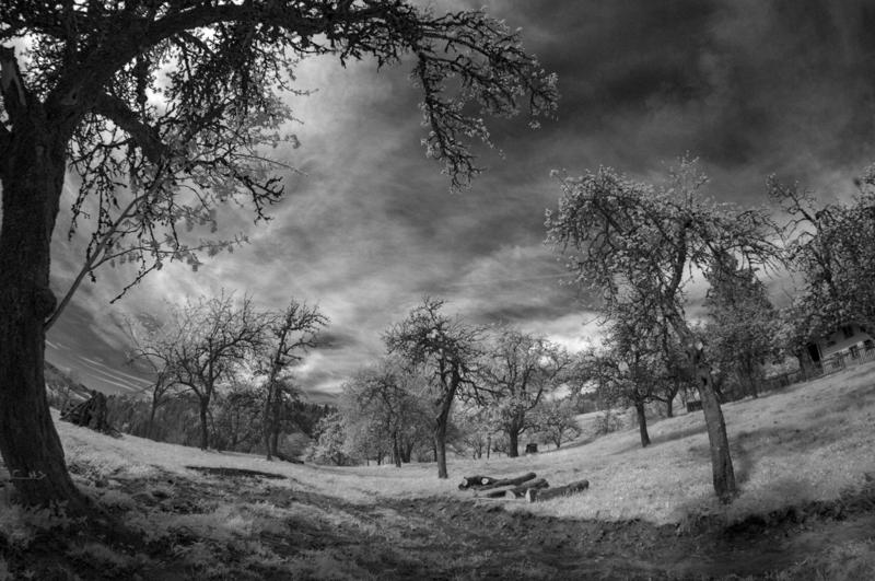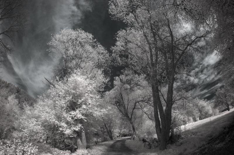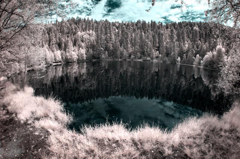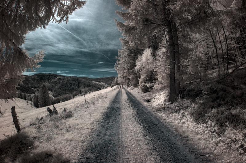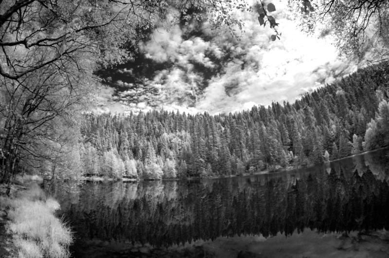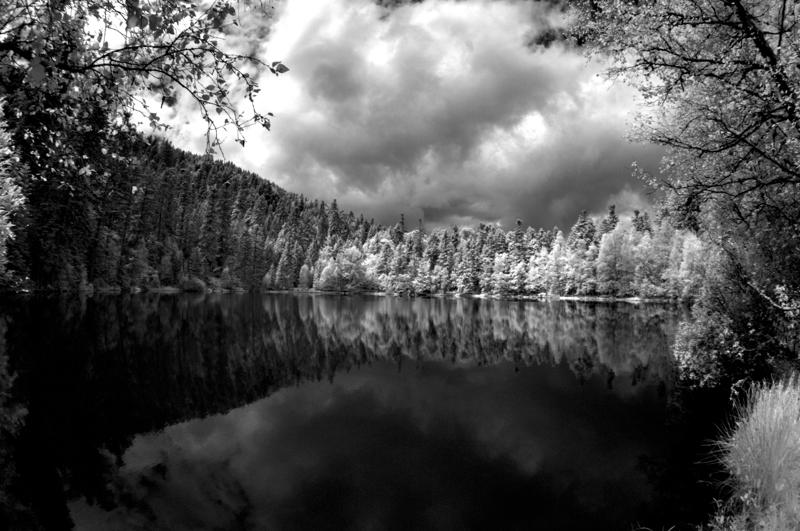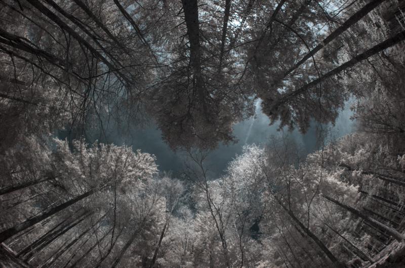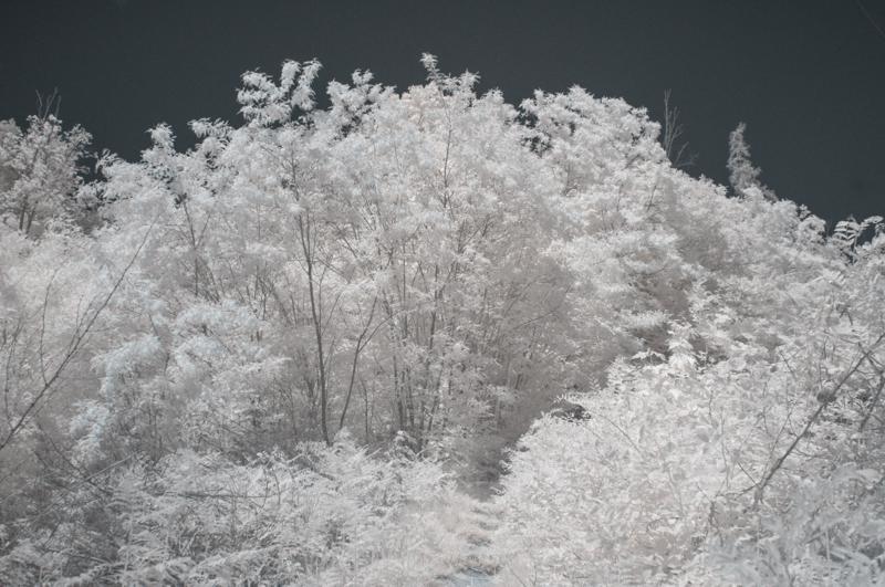 These photos were taken with a Nikon D3100, from which I removed the IR blocking filter in front of the image sensor. The early ones were taken with a cut-out floppy disk as an IR pass filter, but for the latest ones, the Hoya R72 filter was used.